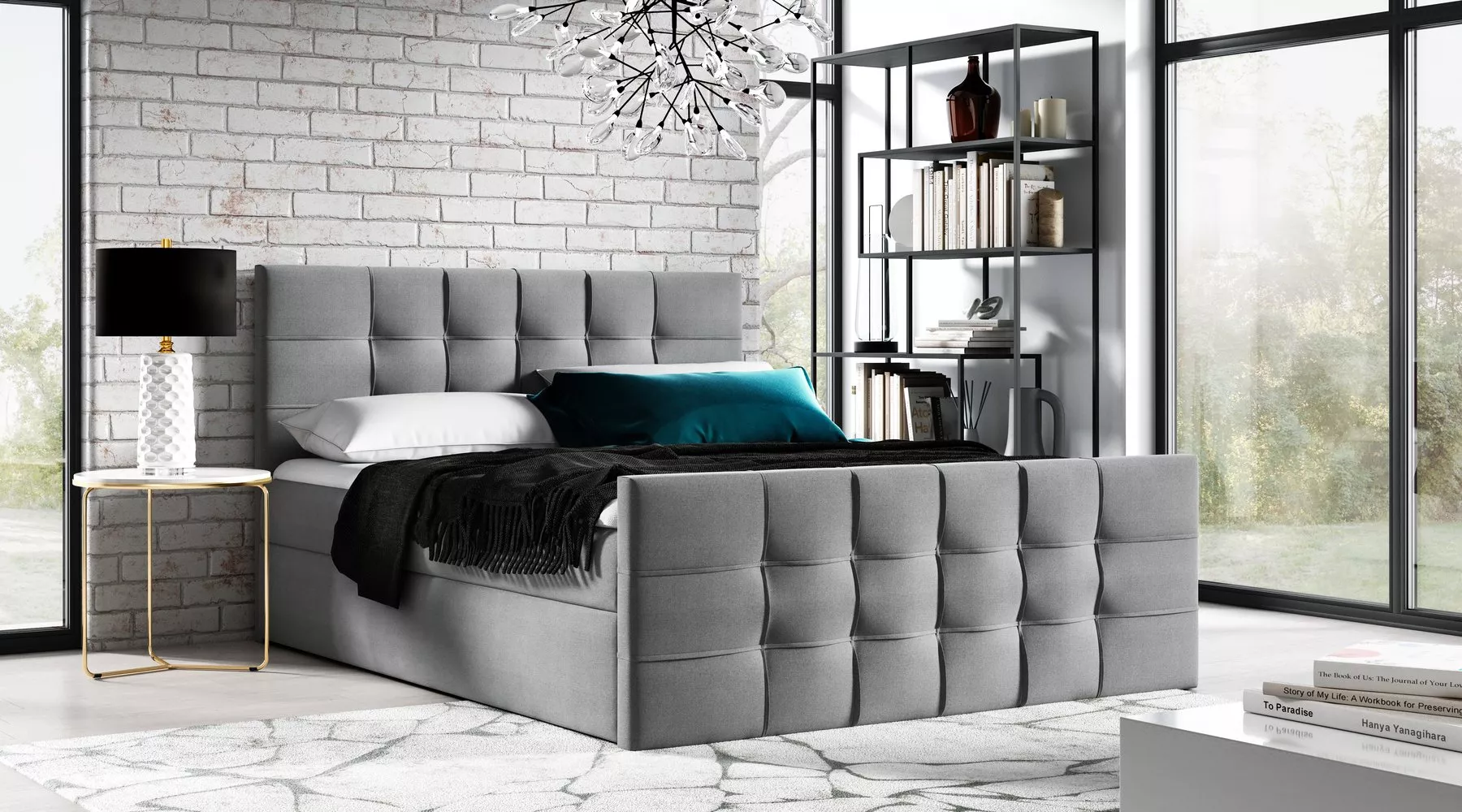 Čalouněná boxspringová postel je ideálním řešením pro komfortně zařízenou ložnici. Pod matracemi najdete praktický úložný prostor, neotřelé designové provedení zkrášlí interiér.