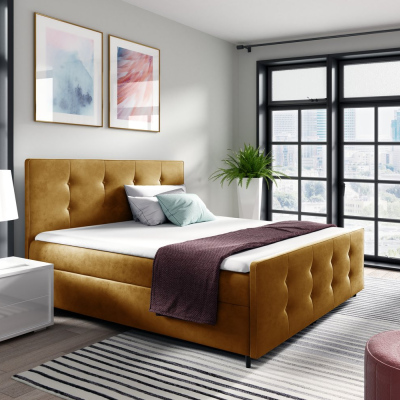 Čalouněná postel CELESTE - 120x200, žlutá + topper ZDARMA