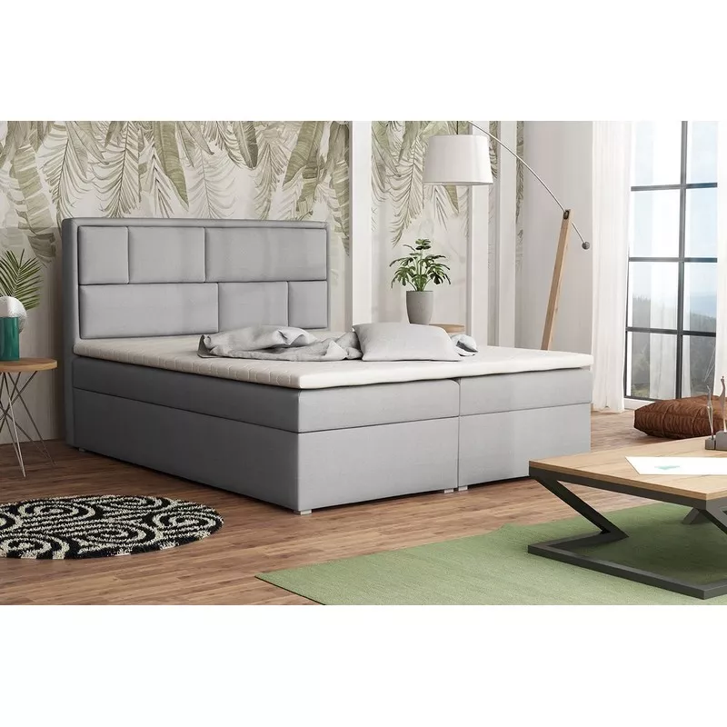 Boxspringová manželská postel s úložným prostorem 140x200 IVENDORF 1 - světlá šedá + topper ZDARMA