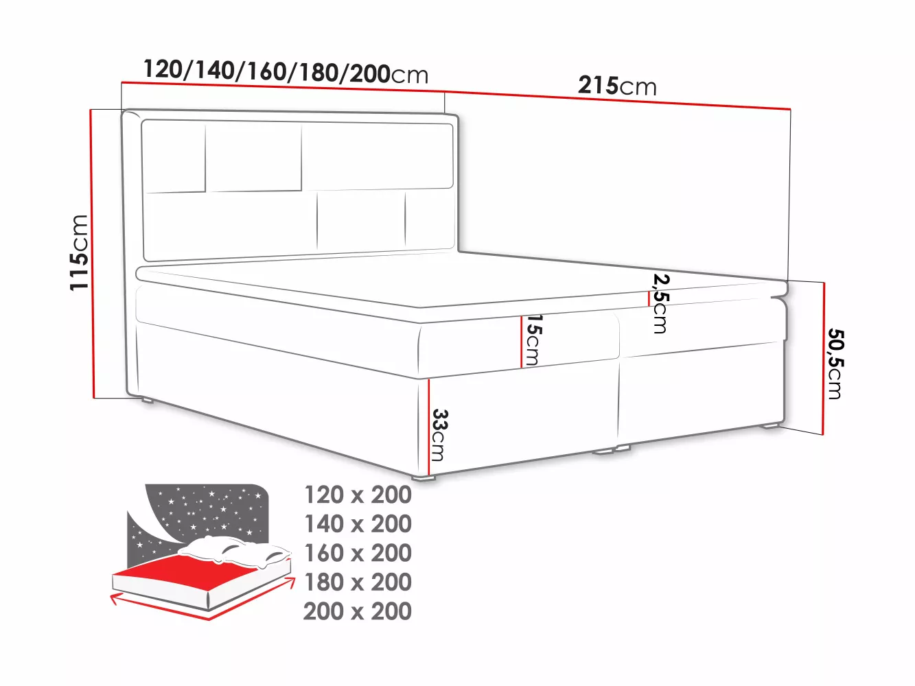 Boxspringová manželská postel IVENDORF 1 o spací ploše 160x200 cm se vyznačuje módním vysokým čelem, nadčasovými barvami a neuvěřitelným pohodlím. Pružinová matrace a topper zajišťují vysoký komfort. Jistě oceníte také dvoukomorový zásobník na lůžkoviny.