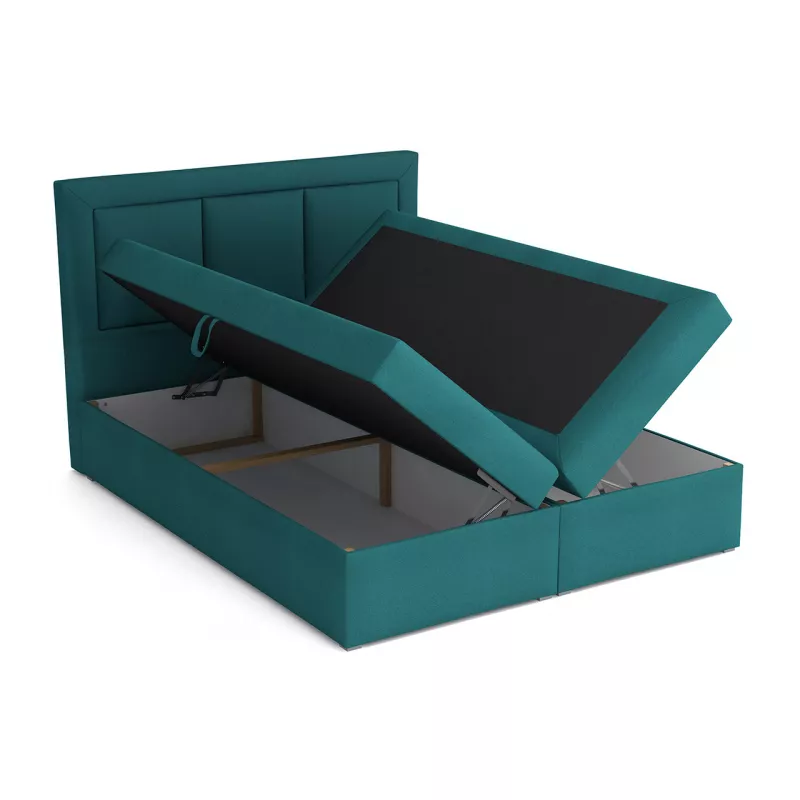 Kontinentální manželská postel GOSTORF 1 je vybavená kvalitní bonellovou matrací a topperem, které vašemu tělu poskytnou dostatečnou oporu a zajistí pohodlí a relaxaci během spánku. Vysoké prošívané čelo je nejen dekorativním prvkem, ale zároveň i praktickou ochranou stěny. Samozřejmostí je dvoukomorový úložný prostor na lůžkoviny.