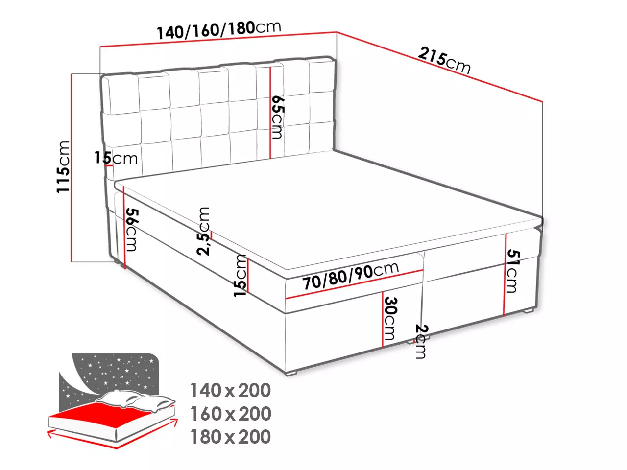 - ložná plocha: 140x200 cm