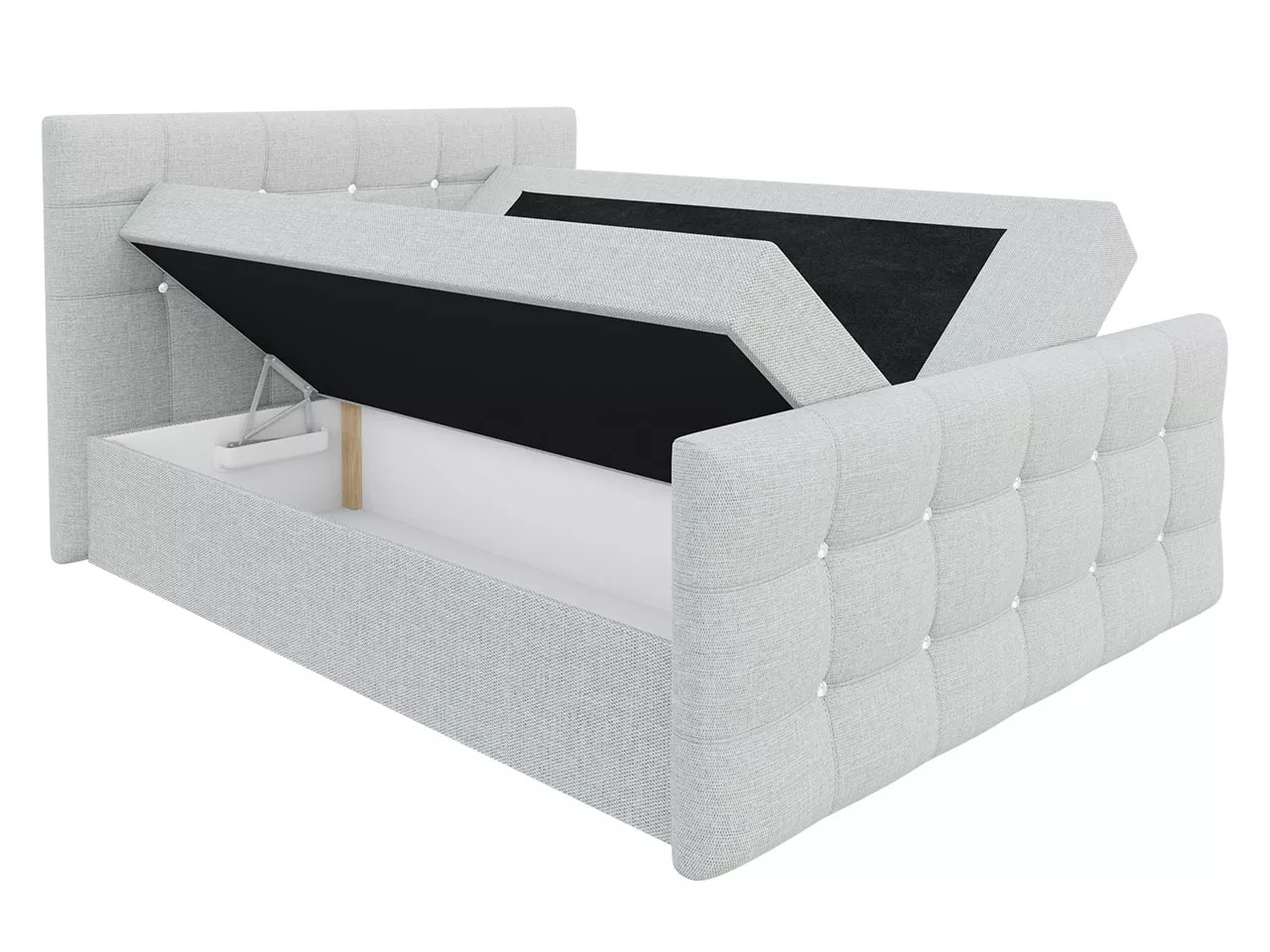 Americká manželská postel TORNIO o spací ploše 140x200 se vyznačuje vysokým prošívaným čelem, které je nejen dekorativním prvkem, ale zároveň i praktickou ochranou stěny. Další výhodou postele je dvoukomorový úložný prostor. Vestavěná pružinová matrace zodpovídá za správnou podporu páteře během spánku, přičemž vrchní pěnový topper zvyšuje pocit pohodlí.