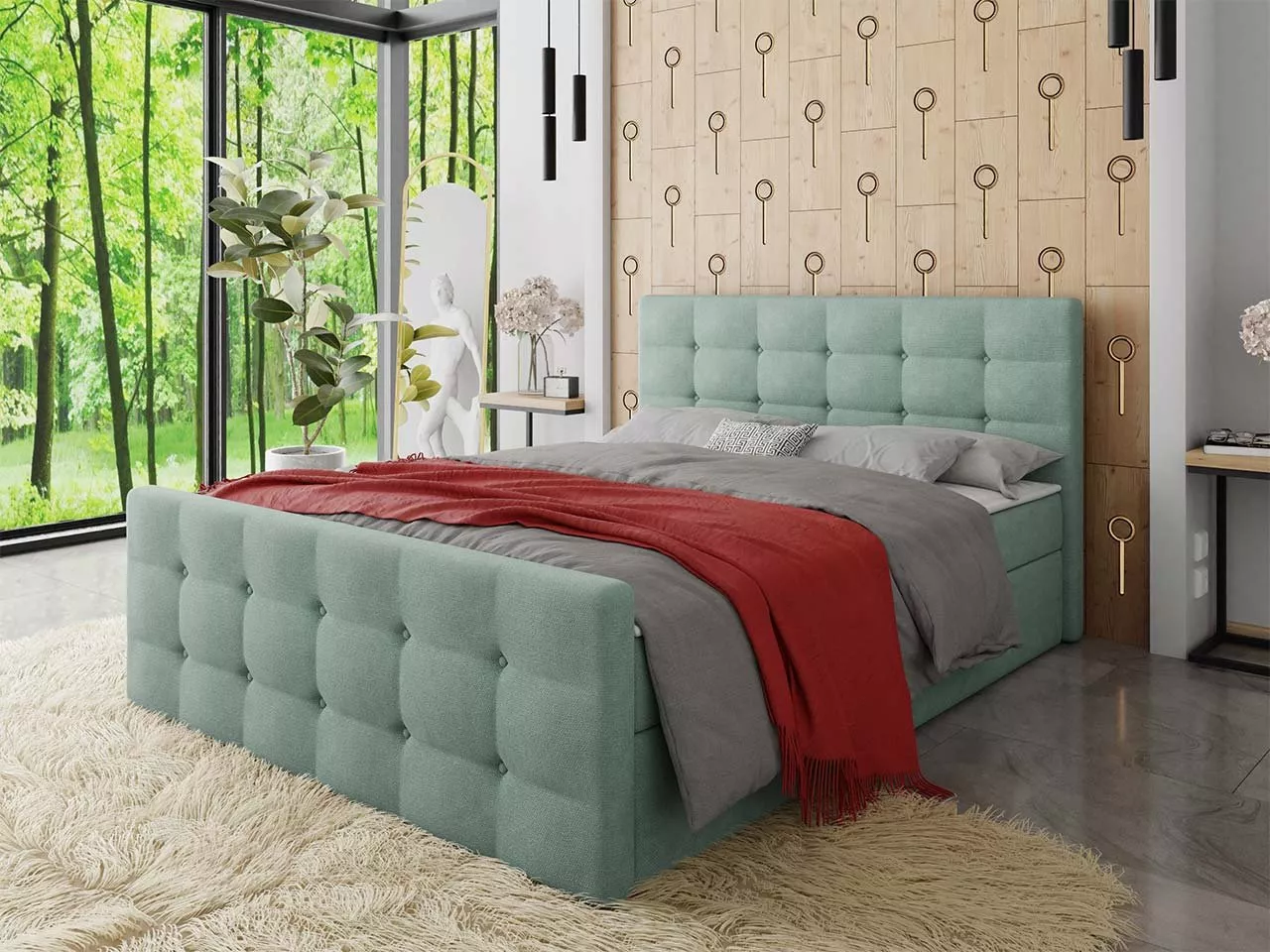 Americká čalouněná manželská postel 140x200 RANON 1 - tyrkysová + topper ZDARMA