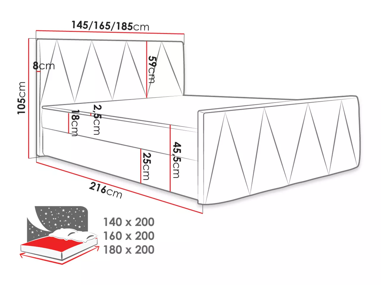 - ložná plocha: 160x200 cm
