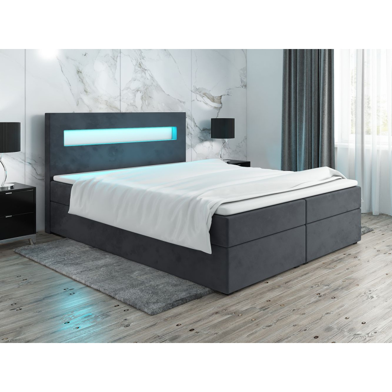 Čalouněná postel s osvětlením LILLIANA 3 - 200x200, šedá