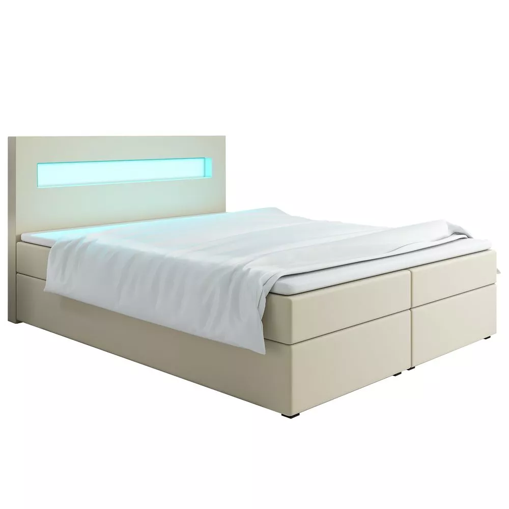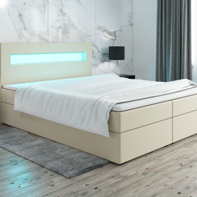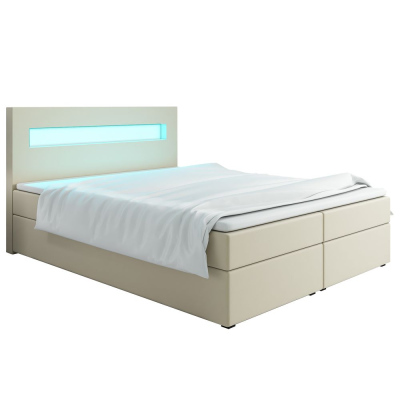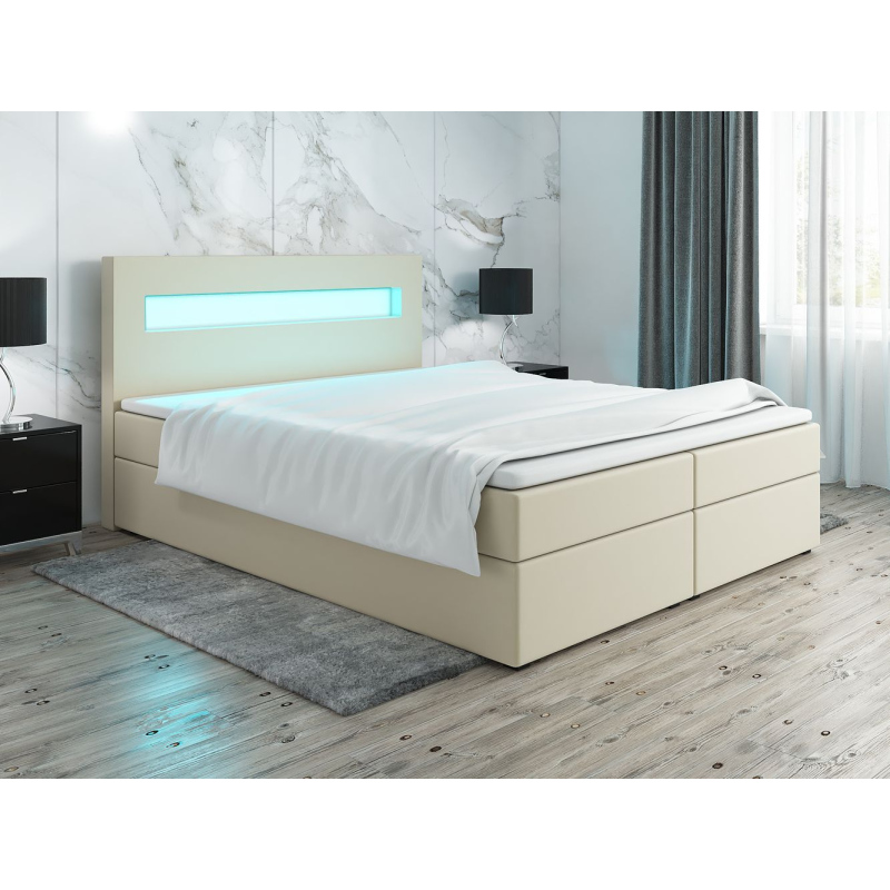 Čalouněná postel s osvětlením LILLIANA 3 - 200x200, béžová eko kůže