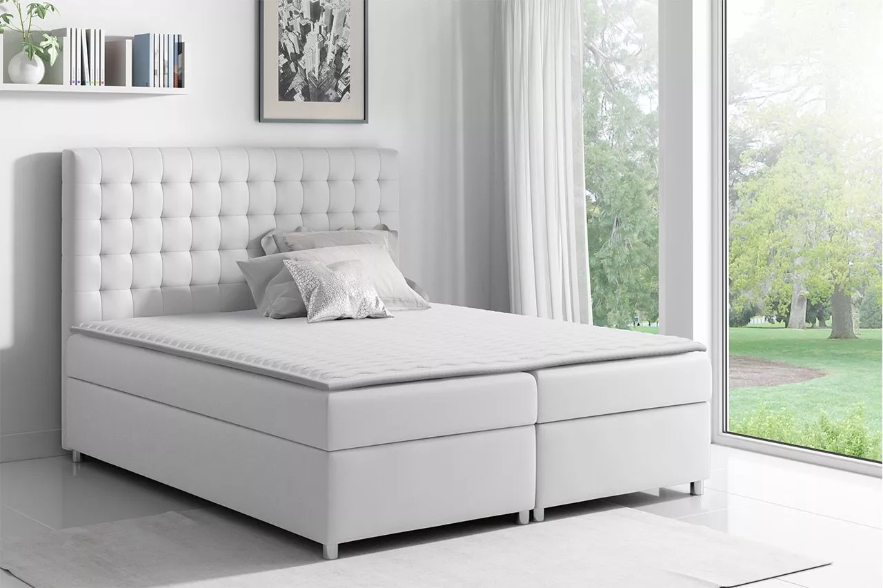 Hotelová manželská postel 160x200 SARITA - bílá ekokůže + topper ZDARMA