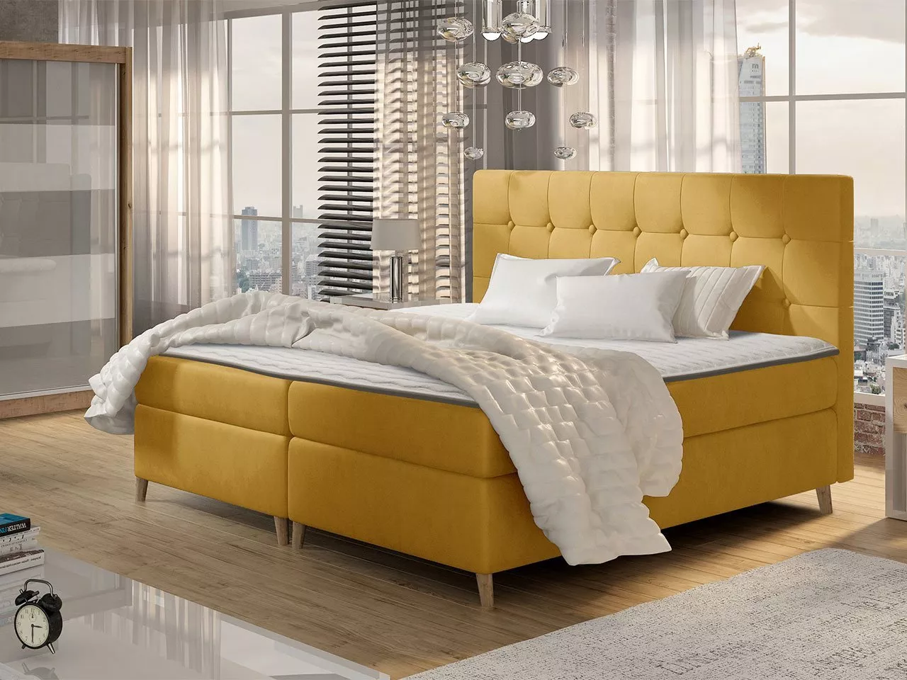 Boxspringová dvojlůžková postel 140x200 SERAFIN - žlutá + topper ZDARMA