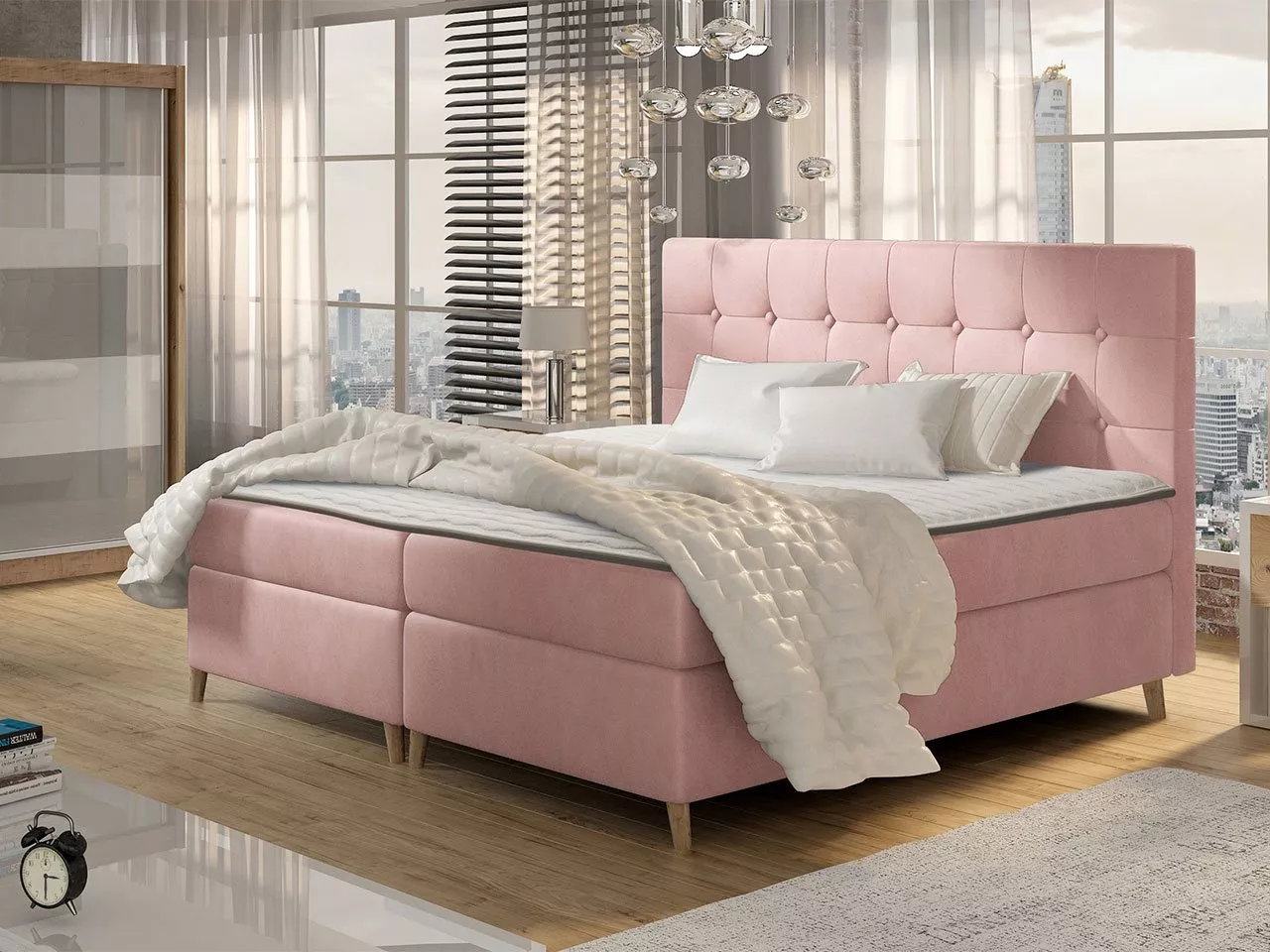 Boxspringová dvojlůžková postel 200x200 SERAFIN - růžová + topper ZDARMA