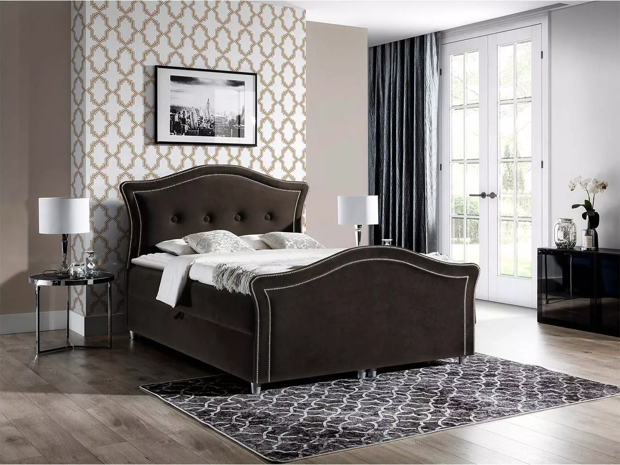 Vysoká kontinentální manželská postel VARIEL 2 inspirovaná klasickým stylem se pyšní prošívaným čelem, které má nejen dekorativní funkci, ale zároveň poskytuje dokonalou oporu zad při čtení vaší oblíbené knihy před spaním. Postel o spací ploše 140x200 cm se postará o pohodlný a zdravý spánek díky dokonalé synchronizaci konstrukce spodního boxu, matrace a topperu. Nechybí ani dvoukomorový úložný prostor.
