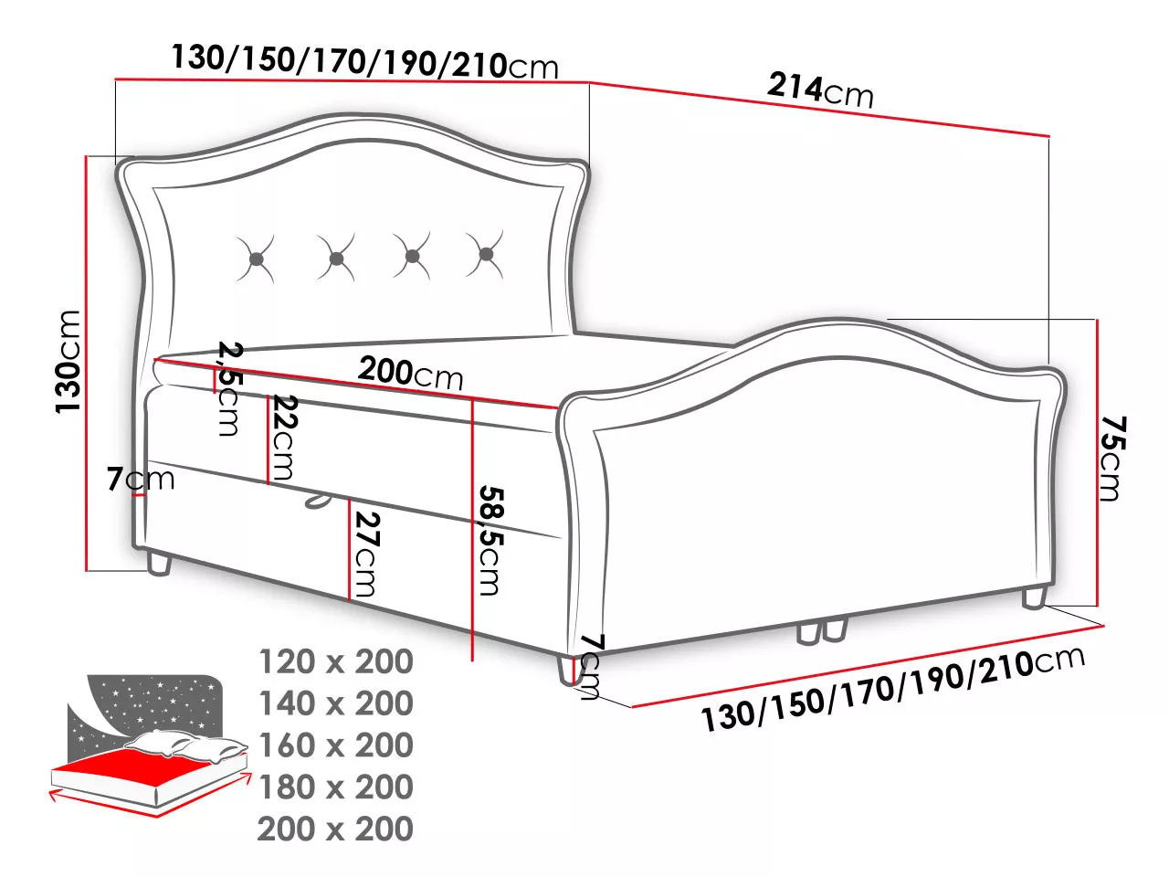 Vysoká kontinentální manželská postel VARIEL 2 inspirovaná klasickým stylem se pyšní prošívaným čelem, které má nejen dekorativní funkci, ale zároveň poskytuje dokonalou oporu zad při čtení vaší oblíbené knihy před spaním. Postel o spací ploše 140x200 cm se postará o pohodlný a zdravý spánek díky dokonalé synchronizaci konstrukce spodního boxu, matrace a topperu. Nechybí ani dvoukomorový úložný prostor.