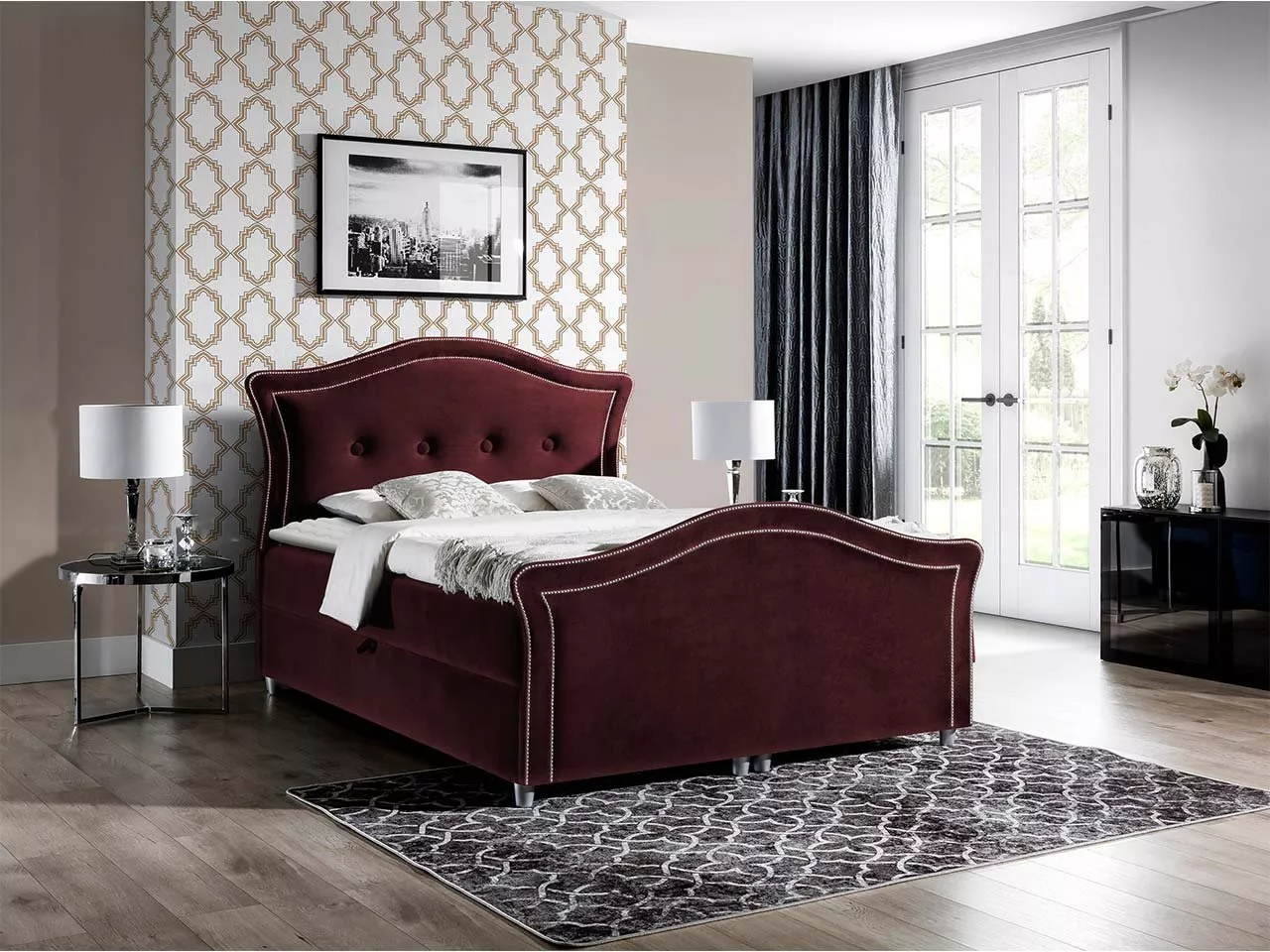 Kontinentální manželská postel 160x200 VARIEL 2 - vínová + topper ZDARMA