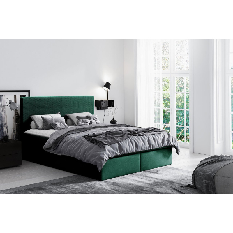 Hotelová manželská postel 140x200 ROSENDO - zelená + topper ZDARMA