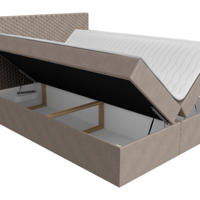 Hotelová manželská postel ROSENDO o spací ploše 140x200 cm je vyrobena z kvalitních komponentů, které jsou zodpovědné za zdravý a pohodlný spánek. Má charakteristickou opěrku hlavy, která dodává interiéru jedinečný design. Postel je vybavena dvoukomorovým úložným prostorem.