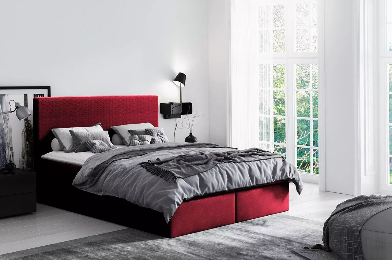 Hotelová manželská postel 160x200 ROSENDO - červená + topper ZDARMA