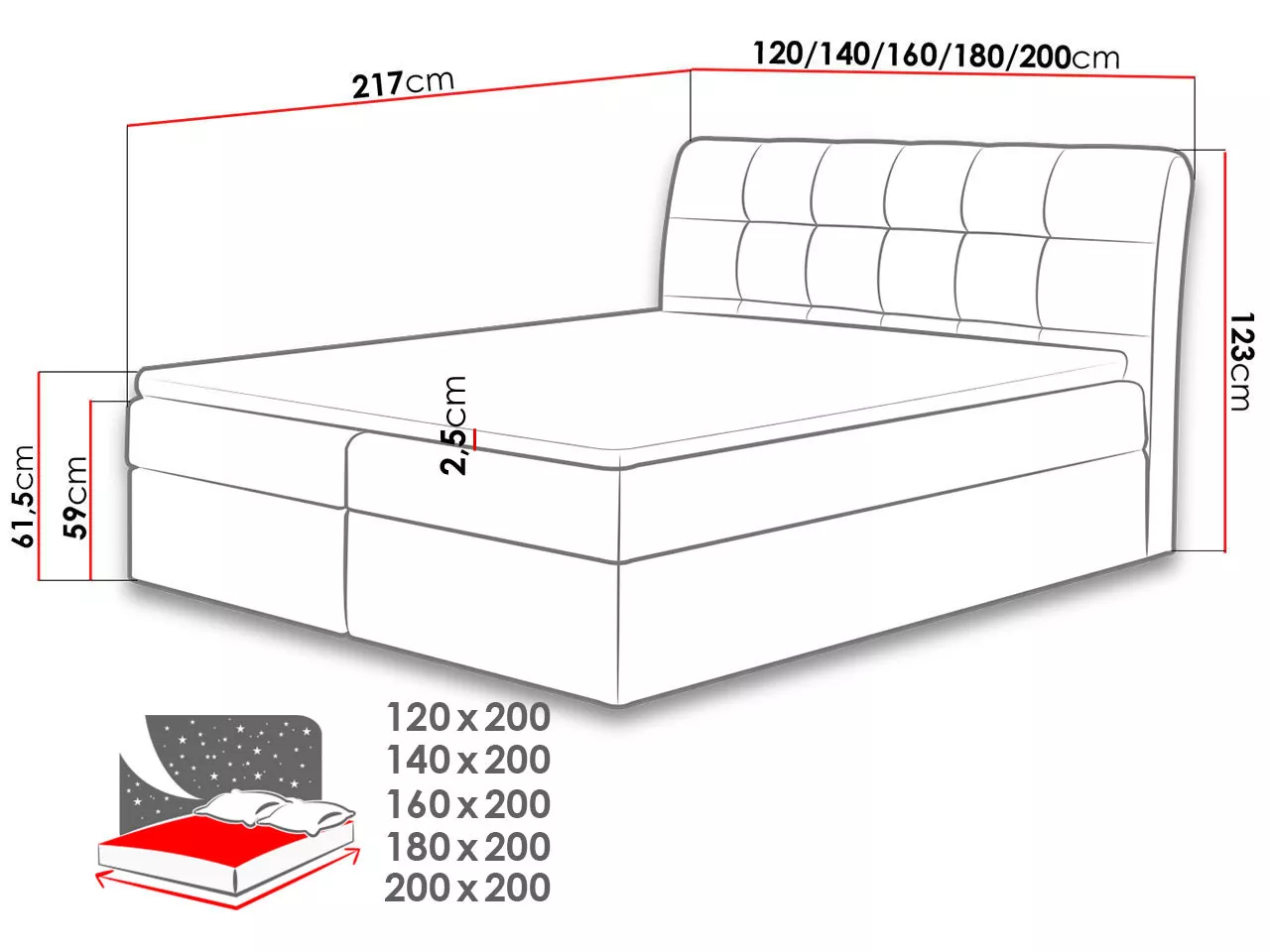 - výška ložné plochy: 59 cm
