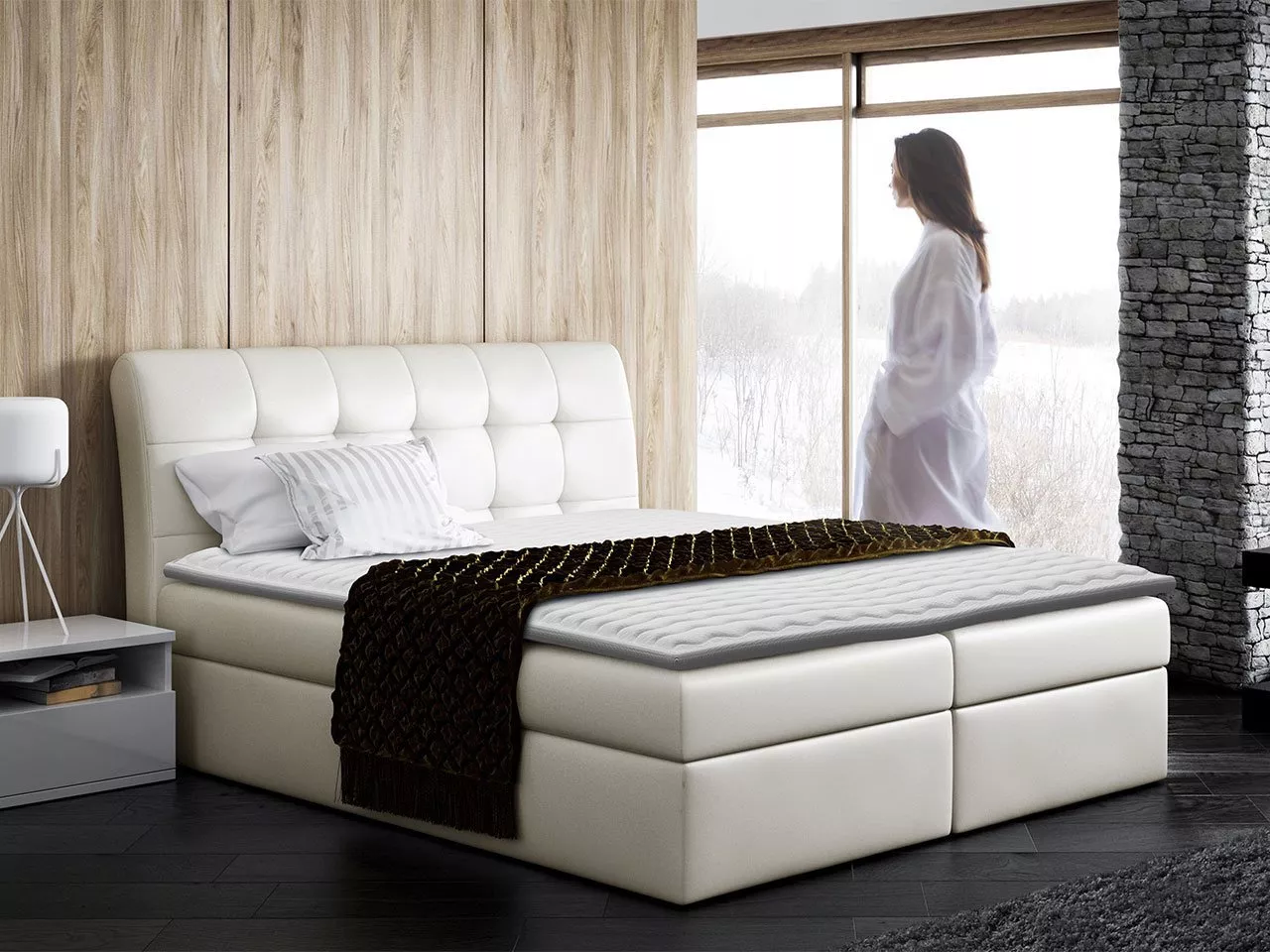 Hotelová jednolůžková postel LUPE o spací ploše 120x200 cm je vybavená kvalitní matrací, která se dokonale přizpůsobí přirozeným křivkám vašeho těla a topperem, který zvyšuje pocit pohodlí a relaxace. Výška ložné plochy výrazně usnadňuje vstávání či ulehání do postele, a proto je vhodná i pro osoby s omezenou pohyblivostí. Součástí postele je také dvoukomorový úložný prostor.