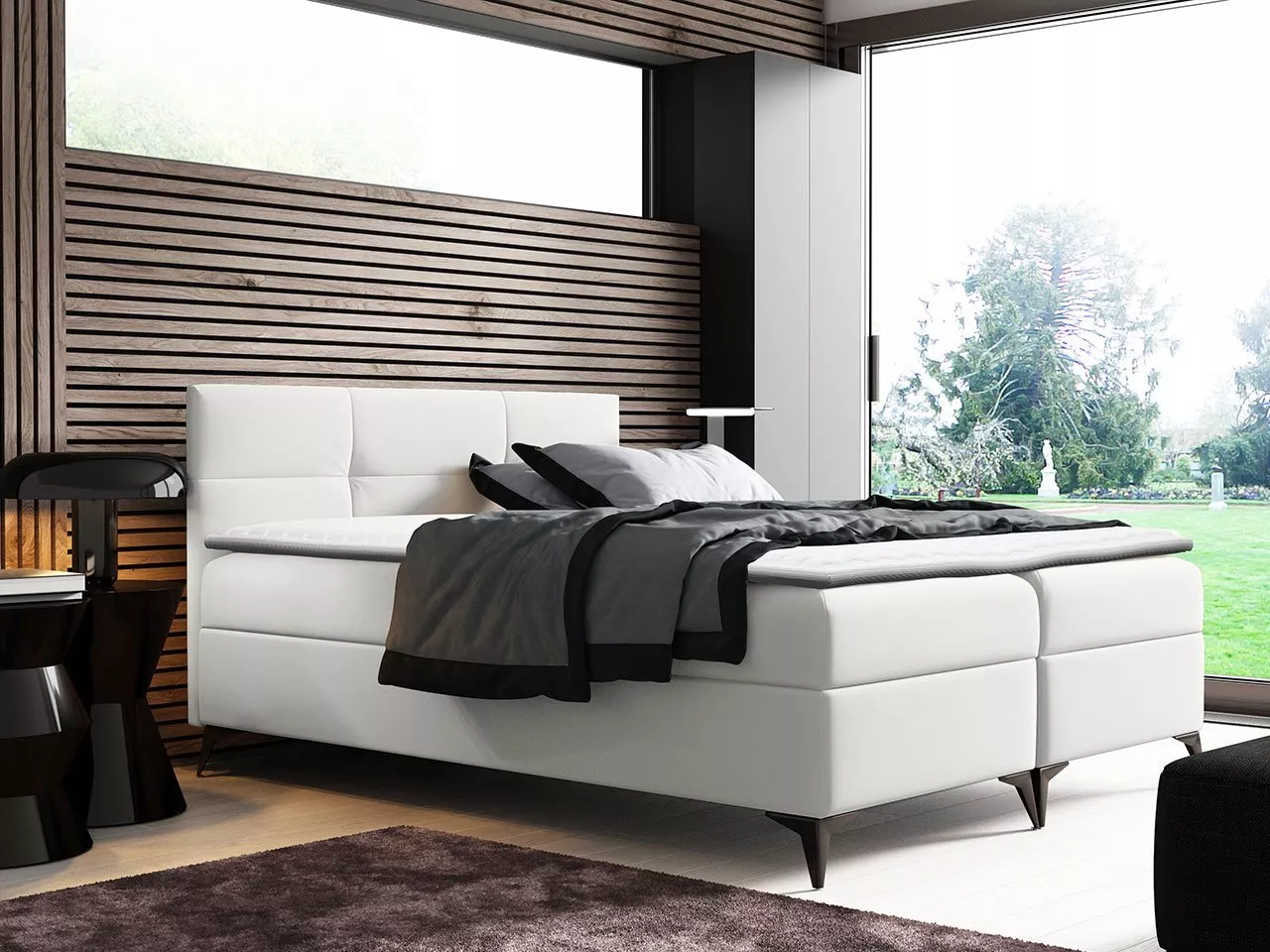 Americká manželská postel 200x200 MERCHE - bílá ekokůže + topper ZDARMA