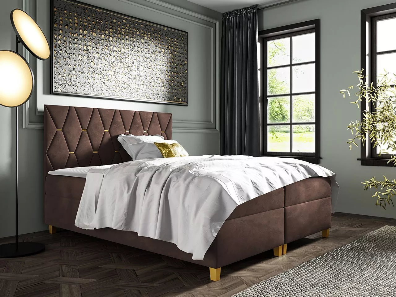 Boxspringová dvoulůžková postel 140x200 LUELA - hnědá + topper ZDARMA
