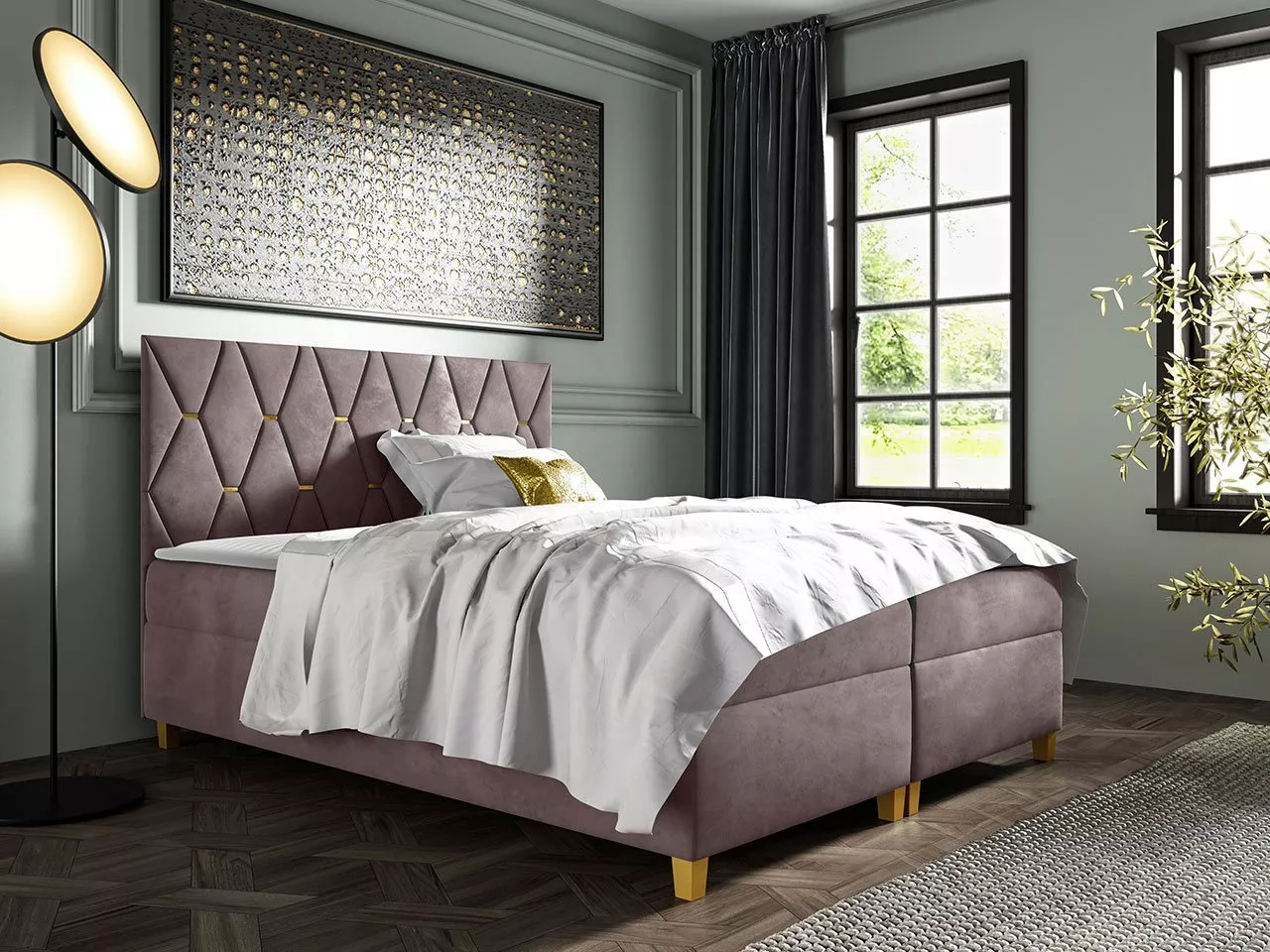 Boxspringová dvoulůžková postel 160x200 LUELA - starorůžová + topper ZDARMA