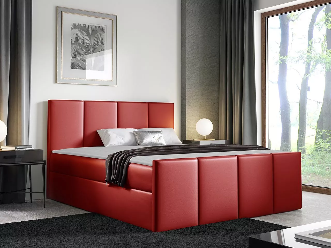 Hotelová manželská postel 140x200 MORALA - červená ekokůže + topper ZDARMA