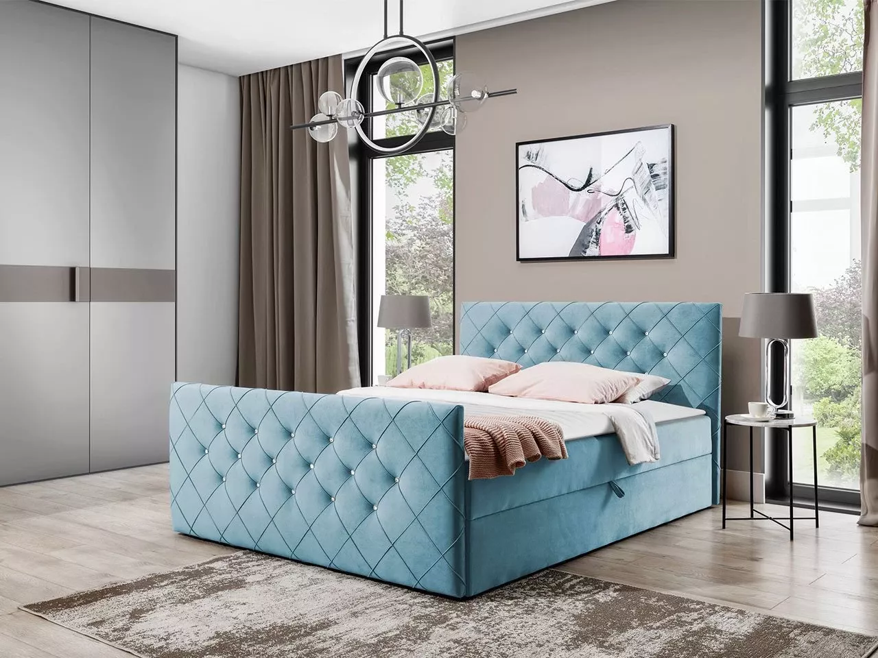 Americká manželská postel 180x200 NATAL - azurová + topper ZDARMA