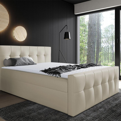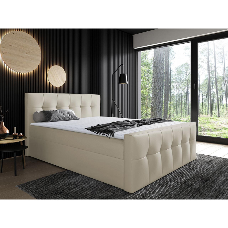 Hotelová manželská postel 160x200 ORLIN - béžová ekokůže + topper ZDARMA