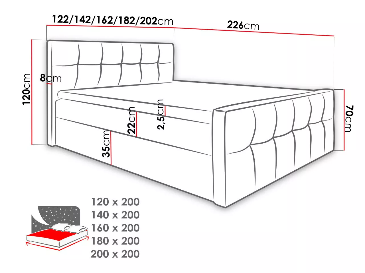 Vysoká hotelová manželská postel ORLIN je oblíbená pro velkorysý dvoukomorový úložný prostor a důmyslné třívrstvé řešení. Postel o spací ploše 160x200 cm tvoří kvalitní matrace poskytující dostatečnou oporu těla a topper, který zvyšuje pocit pohodlí a relaxace. Vysoké prošívané čelo zajišťuje pohodlnou opěru zad, a zároveň chrání stěnu před znečištěním.