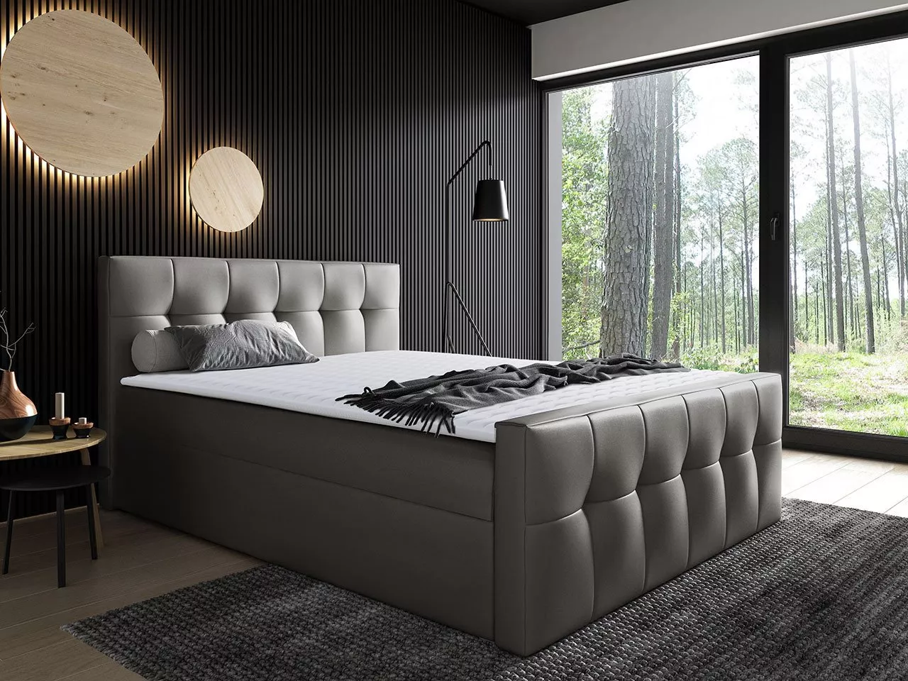 Hotelová manželská postel 180x200 ORLIN - šedá ekokůže + topper ZDARMA
