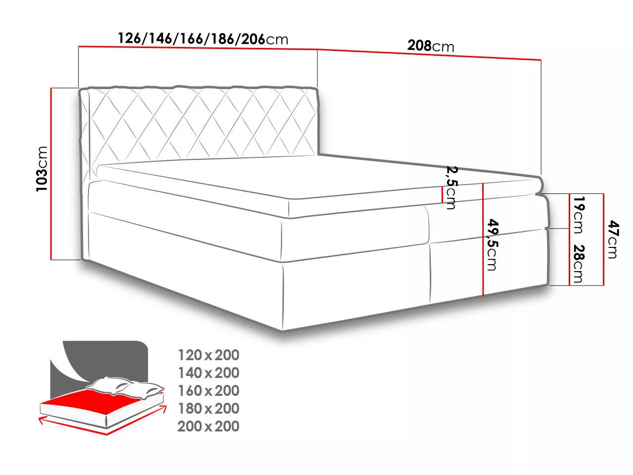 - výška ložné plochy: 47 cm