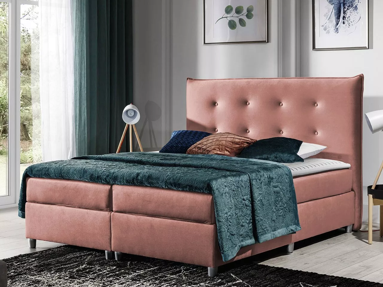 Manželská čalouněná postel 200x200 RUFA - růžová + topper ZDARMA