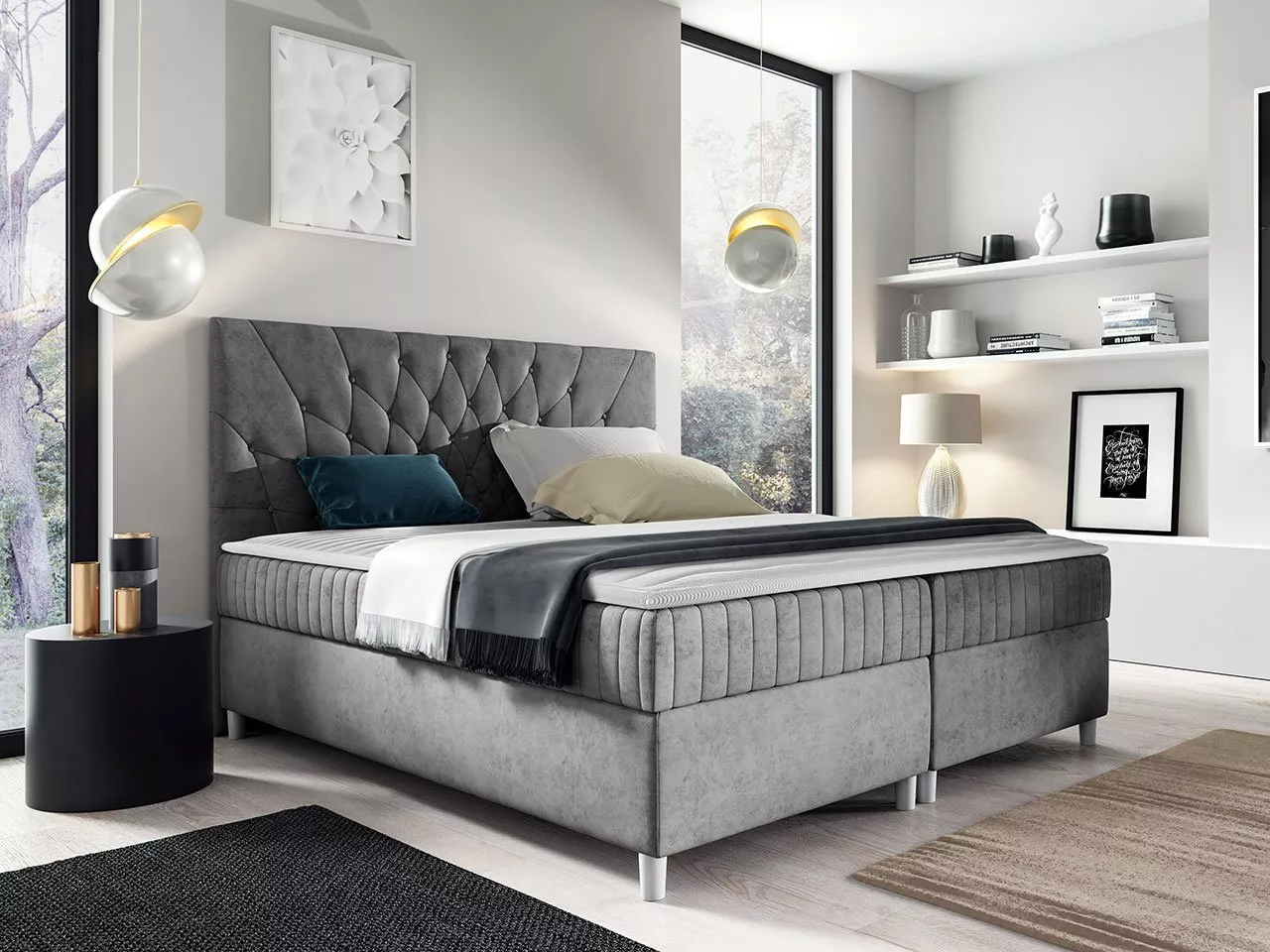 Hotelová manželská postel 140x200 RUSK - šedá + topper ZDARMA