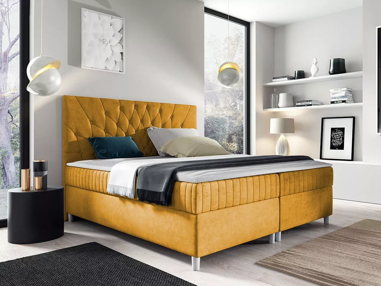 Hotelová manželská postel 160x200 RUSK - žlutá + topper ZDARMA