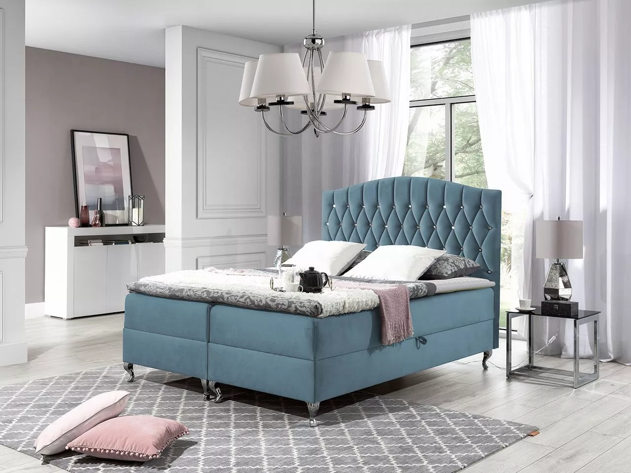 Kontinentální manželská postel 140x200 SALOMON - světlá modrá + topper ZDARMA