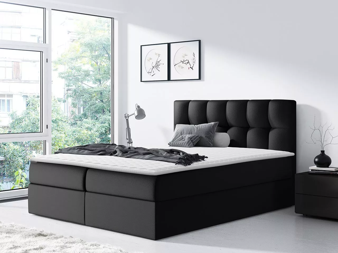 Hotelová manželská postel 160x200 KOLDBY - černá ekokůže + topper ZDARMA