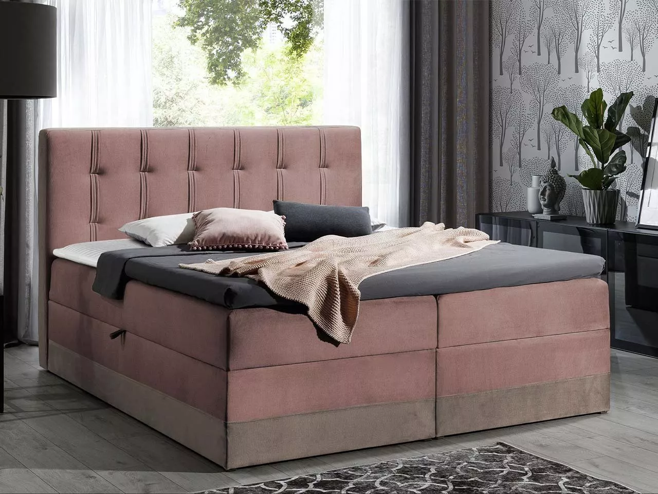 Boxspringová manželská postel 140x200 SANDIA - růžová / hnědá + topper ZDARMA