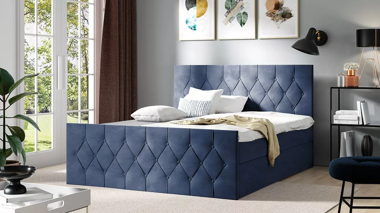 Boxspringová dvojlůžková postel 160x200 SENCE 2 - modrá + topper ZDARMA