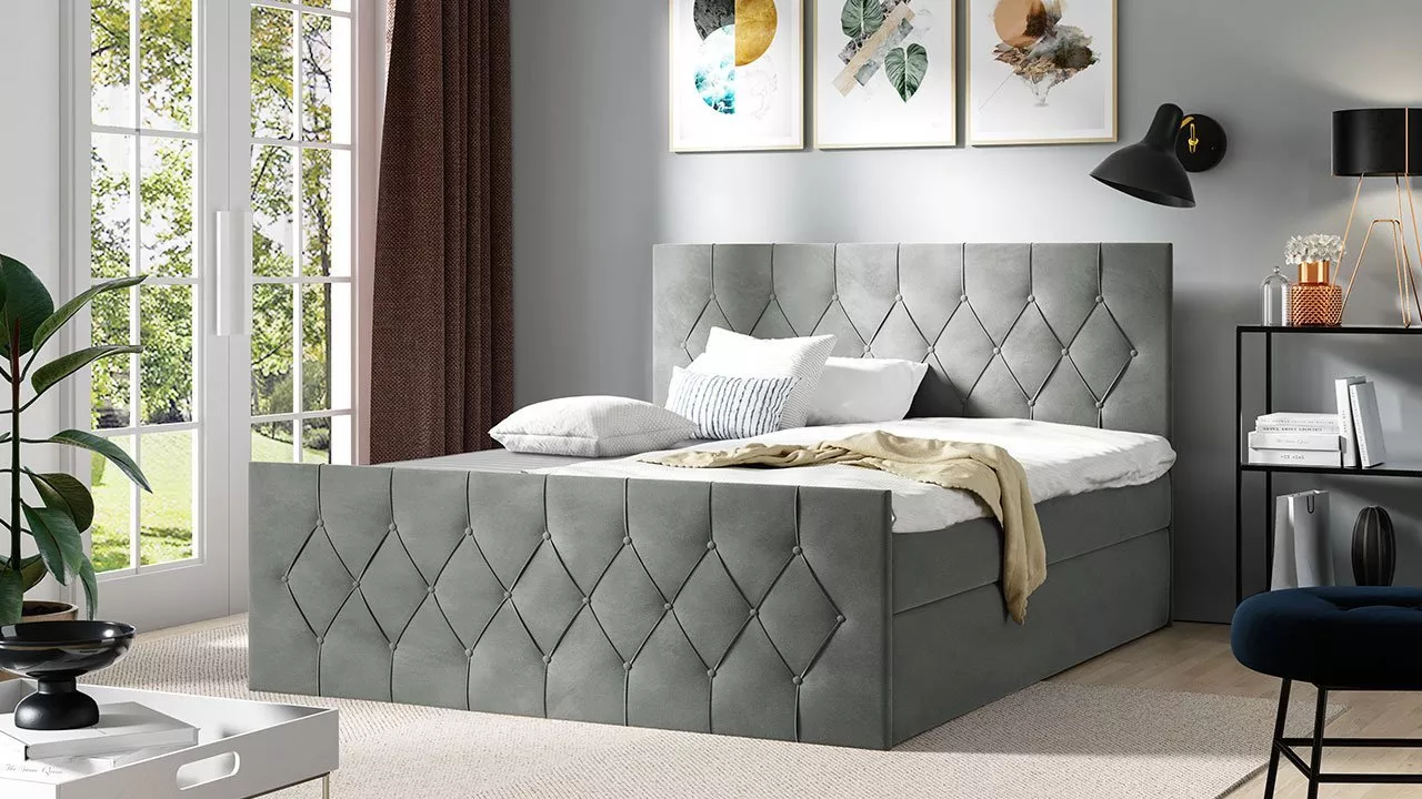 Boxspringová manželská postel SENCE 2 o spací ploše 160x200 cm nabízí vysokou ložnou plochu, která usnadňuje vstávání a ulehání, dlouhou životnost, vynikající cirkulaci vzduchu a dostatečnou nosnost. Vyznačuje se také velkorysým a snadno přístupným úložným prostorem. Vysoké prošívané čelo zajišťuje pohodlnou opěru zad, a zároveň chrání stěnu před znečištěním.