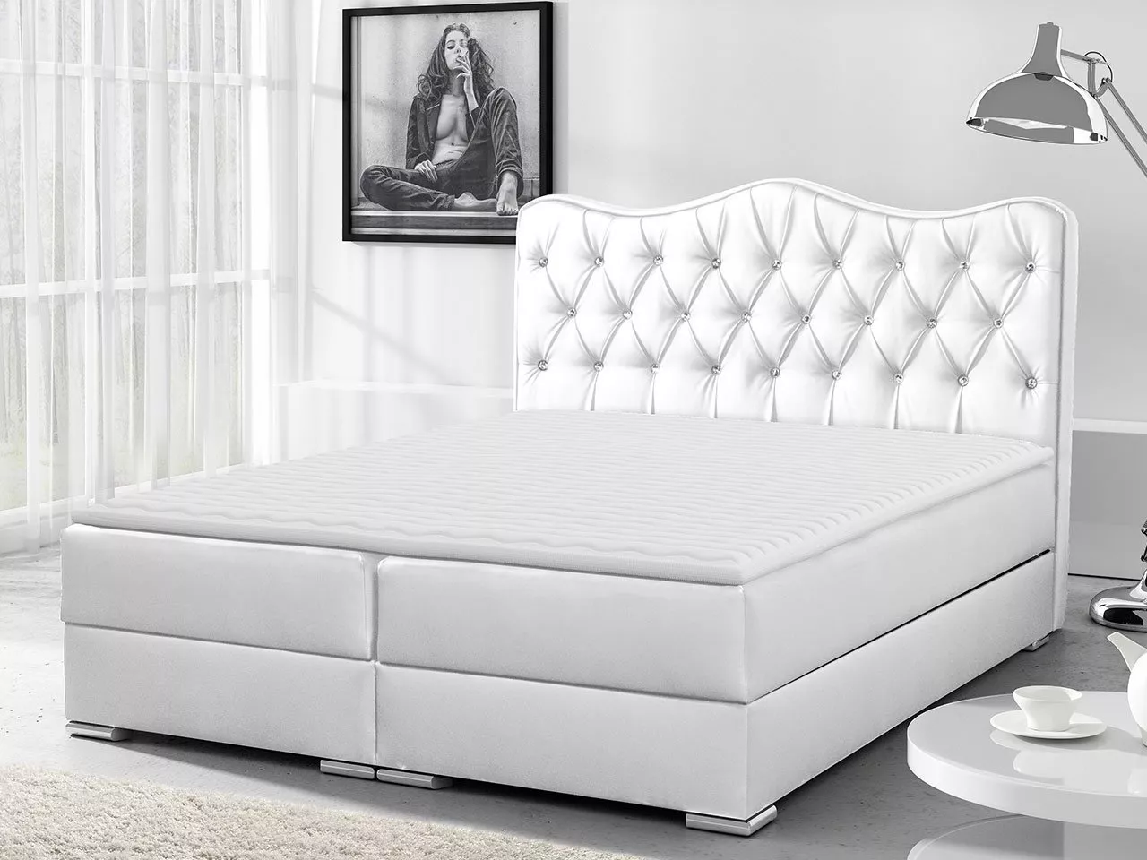 Kontinentální manželská postel 140x200 TEJANA - bílá ekokůže + topper ZDARMA