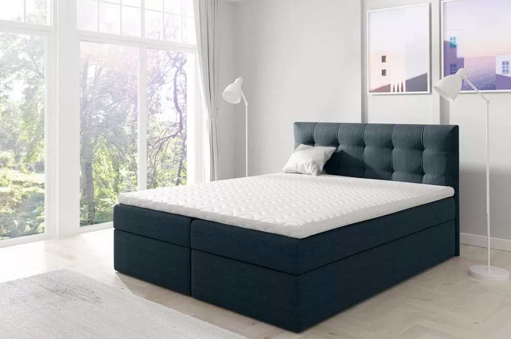 Boxspringová manželská postel 140x200 TOMASA 1 - modrá 1 + topper ZDARMA