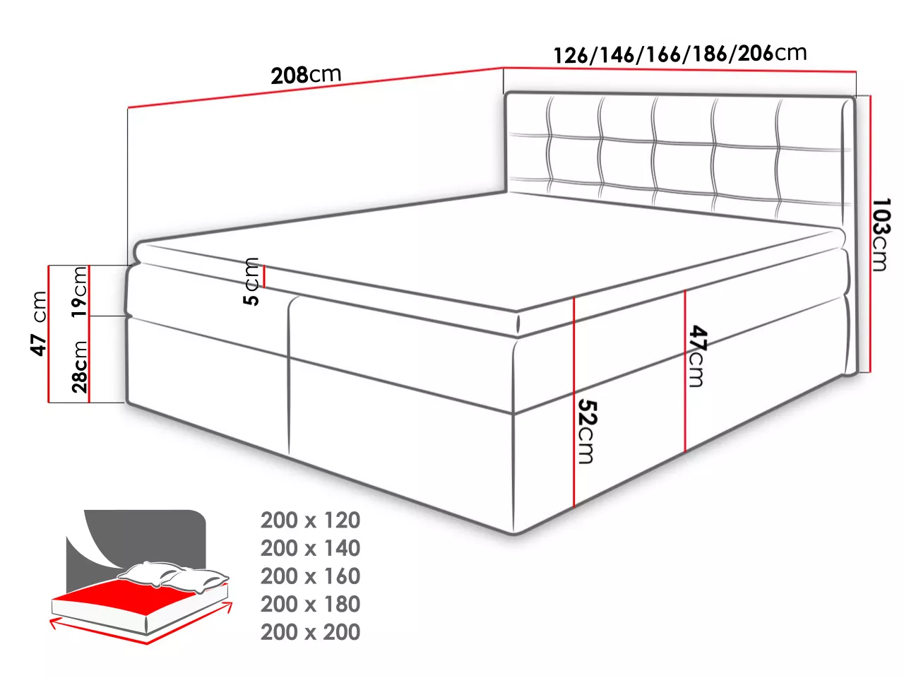 - ložná plocha: 140x200 cm