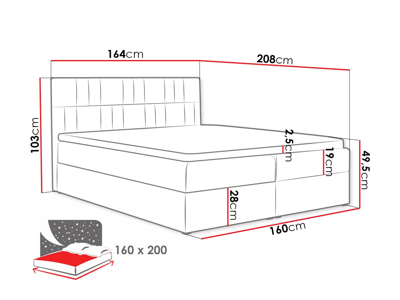 Americká manželská postel 160x200 TOMASA 3 - šedá + topper ZDARMA