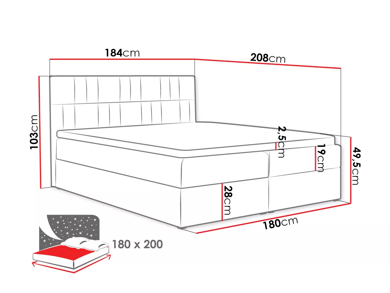 Americká manželská postel 180x200 TOMASA 3 - růžová + topper ZDARMA