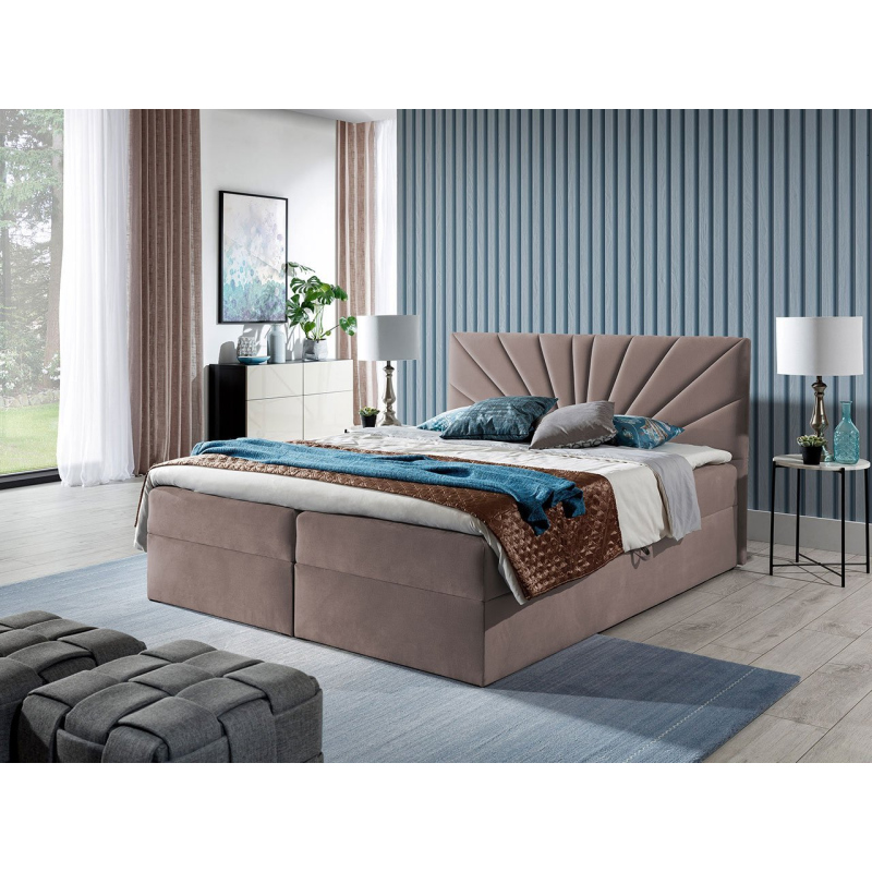Boxspringová manželská postel 140x200 TOMASA 4 - růžová + topper ZDARMA