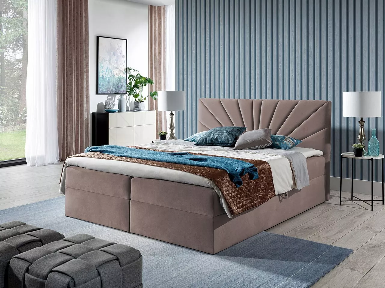 Boxspringová manželská postel TOMASA 4 je oblíbená pro velkorysý úložný prostor a důmyslné třívrstvé řešení. Postel o spací ploše 140x200 cm přináší vysoký komfort při užívání a zaručuje kvalitní a zdravý spánek. Vysoké elegantní čelo zajistí pohodlnou opěru zad, a zároveň chrání stěnu před znečištěním.