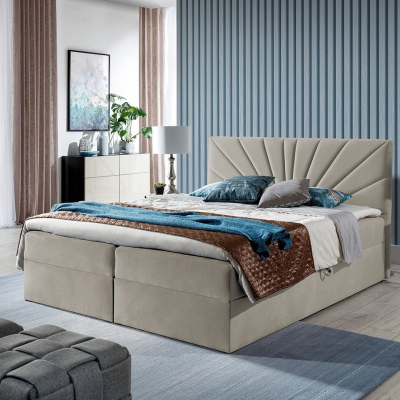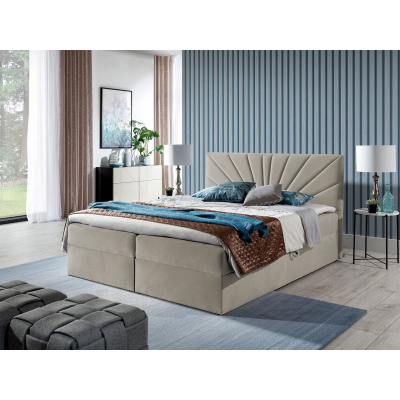 Boxspringová manželská postel 140x200 TOMASA 4 - béžová + topper ZDARMA