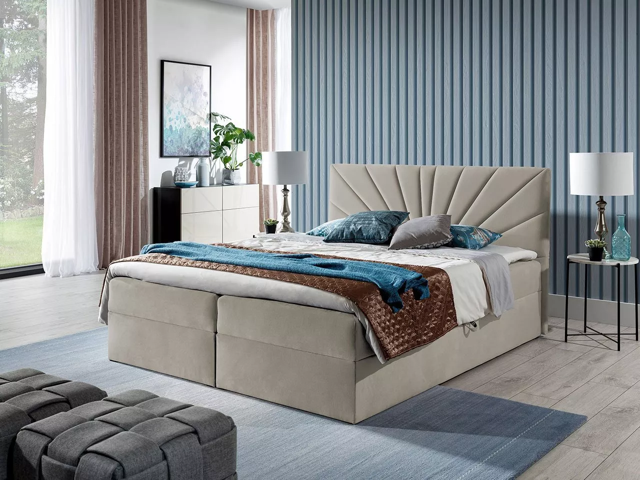 Boxspringová manželská postel TOMASA 4 je oblíbená pro velkorysý úložný prostor a důmyslné třívrstvé řešení. Postel o spací ploše 140x200 cm přináší vysoký komfort při užívání a zaručuje kvalitní a zdravý spánek. Vysoké elegantní čelo zajistí pohodlnou opěru zad, a zároveň chrání stěnu před znečištěním.