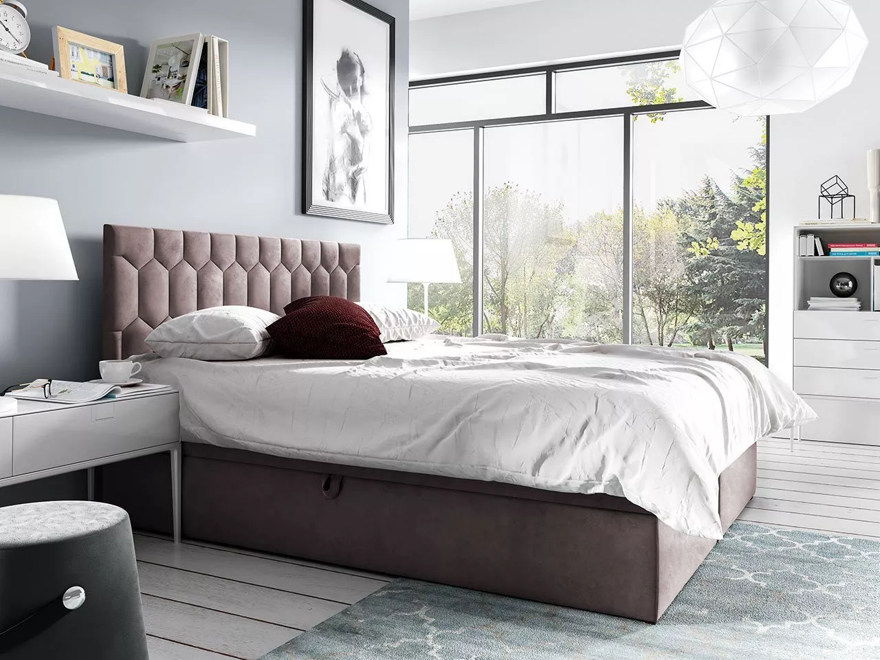 Kontinentální dvoulůžková postel TOMASA 6 je oblíbená pro velkorysý úložný prostor a důmyslné třívrstvé řešení. Postel o spací ploše 140x200 cm přináší vysoký komfort při užívání a zaručuje kvalitní a zdravý spánek. Vysoké elegantní čelo zajistí pohodlnou opěru zad, a zároveň chrání stěnu před znečištěním.