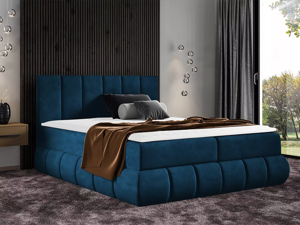 Boxspringová dvojlůžková postel 180x200 VERDA - modrá + topper ZDARMA